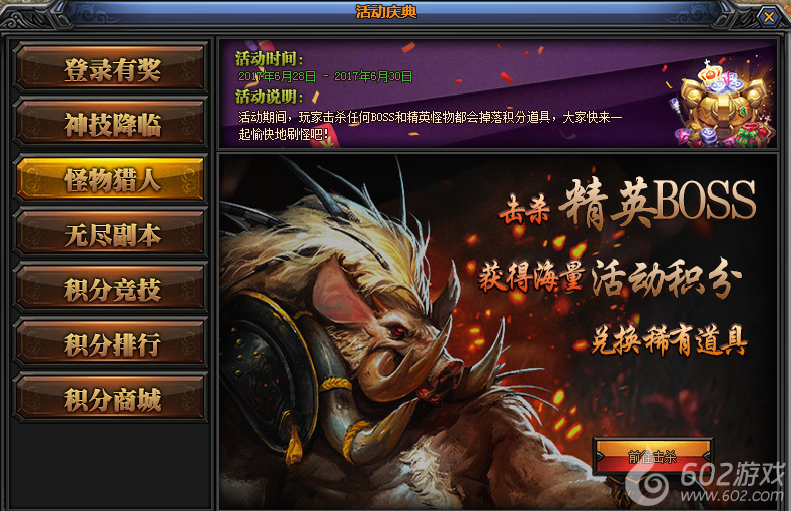 活动期间,玩家击杀BOSS和精英怪都有可能掉落积分道具,使用积分可兑换稀有道具