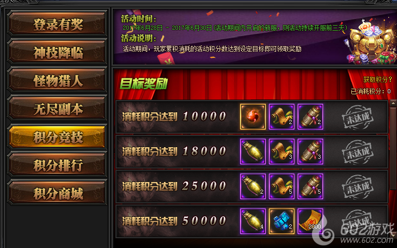 活动期间,玩家消耗积分达到目标后可领取奖励