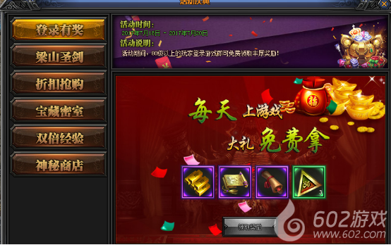 等级高于80级的玩家,活动期间每次登陆可以领取活动奖励