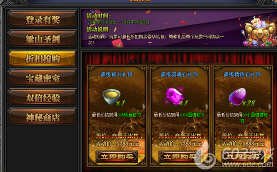 活动期间,玩家根据自身VIP等级可以购买不同档次的礼包,每种礼包每个玩家只能购买一次
