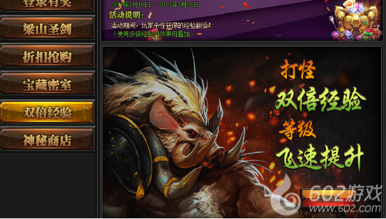 活动期间,玩家杀怪可获得经验翻倍效果(可与多倍经验丹效果叠加)